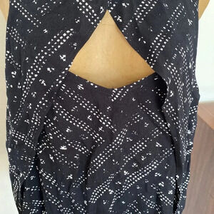 Free People tank blouse cut out detail sz M viscose rayon blend black w/ white excellent pre owned condition