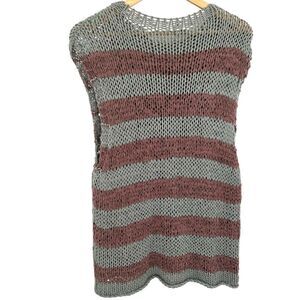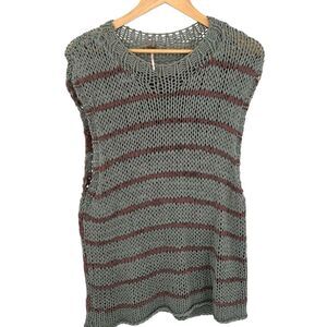 Free People wave after wave sleeveless sweater aqua and taupe stripe size Medium