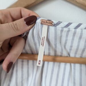 Free People white grey neutral stripe Caroline U-neck princess long sleeve top