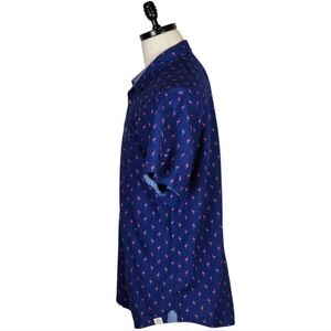 Free Planet Flamingo Print Shirt Navy Pink XL Short Sleeve Button Down