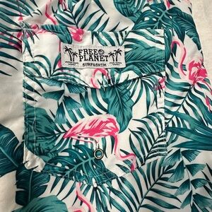 Free Planet Green and Pink Leaf Swim Flamingo Trunks