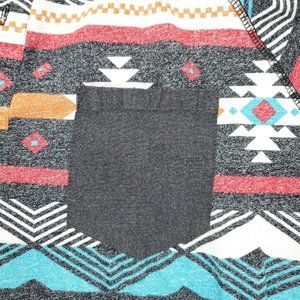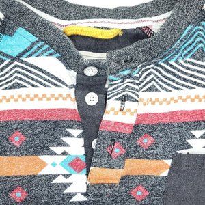 Free Planet Henley T-Shirt Men Medium Aztec Southwest Short Sleeve Tee Pocket