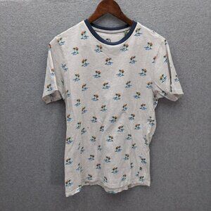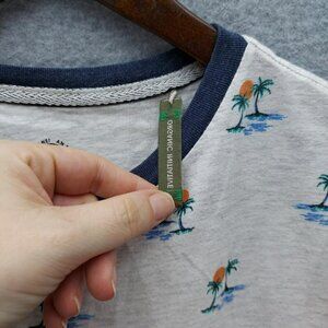 Free Planet Mens Organic Cotton T-Shirt Palm Tree Print M Light Gray