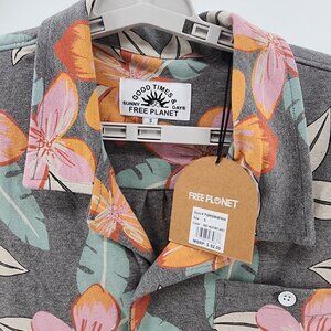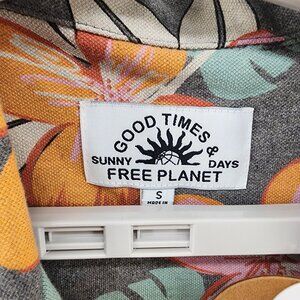 Free Planet Mens S Floral Button Up Shirt Short Sleeve Good Times Sunny Days