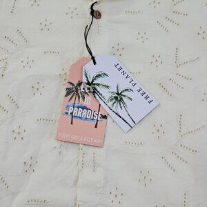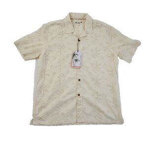 Free Planet Men's Size L Large Butter Yellow Floral Embroidery Button Top NWT