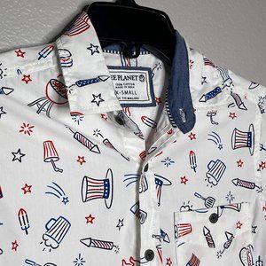 Free Planet White Button Down Patriotic Picnic Summer Size XS