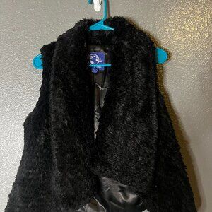 Free Planet Women’s Black Faux Fur Open Front Vest – Sleeveless Layering Piece
