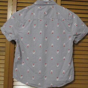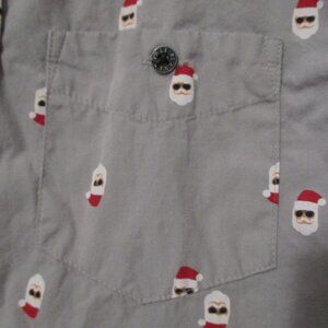 Free Planet brand - Super fun boys Christmas button down shirt with one front pocket. 100% cotton light gray with Santa faces wearing sunglasses. Great condition.