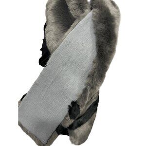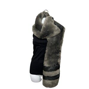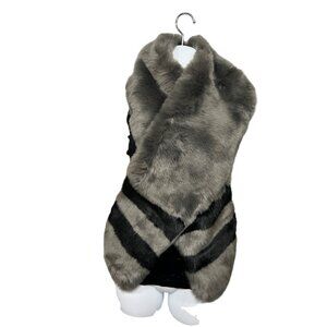 Free Press Accessories Faux Fur Scarf Gray Black Striped NWT