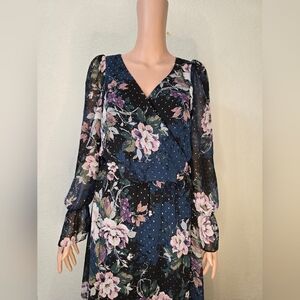 Free Press Clothing Sheer Long Sleeve Floral Faux Wrap Dress Size Medium green