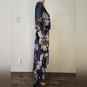 This stunning Free Press clothing wrap dress is perfect for any special occasion. The dress features a beautiful floral pattern that is sure to turn heads. The V-neckline and long sleeves add a touch of elegance, while the tie closure creates a flattering and comfortable fit.