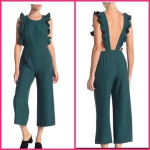 Free Press Ruffled Cropped Jumpsuit in Green Bug