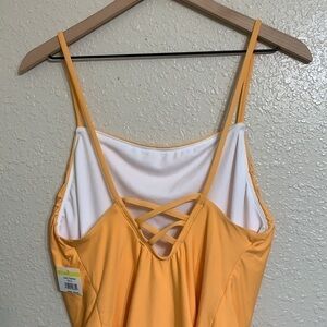 New but has a small spot on back, shown in picture. Possibly will wash out when washed