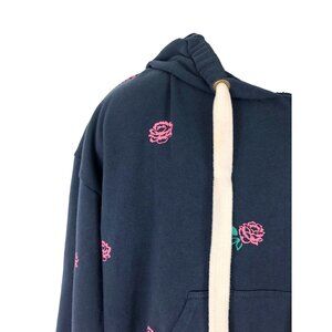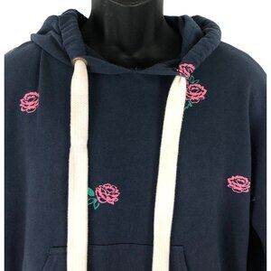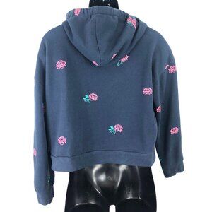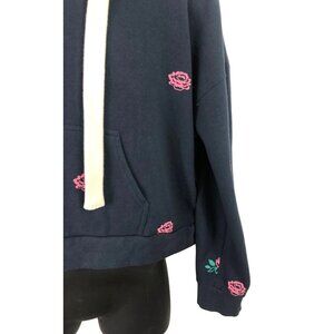 Free Press Juniors Size Large Navy Blue Long Sleeve Cropped Hoodie Pink Roses