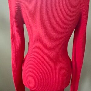 Stylish red mini dress. Ribbed texture. Long sleeves. Perfect for any occasion.