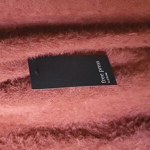 Free press sweater, color is called Brown Spice, reminds me of a cinnamon color with a kind of red undertone. Very soft fuzzy and stretchy sweater. Fits high on the neck. Girly, cute, sweet, twee, casual, cozycore, comfy, cozy, office, workplace, brunch, demure, autumn