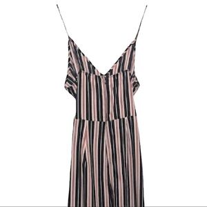 Free Press V-Neck Tie Back Striped Black & Red Jumpsuit Size M NWT
