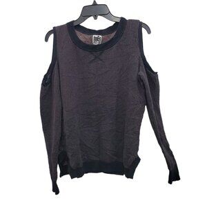 Free Press Women's Black Brown Geo Arrow Cold Shoulder Knit Cotton Sweater Sz S