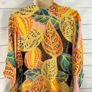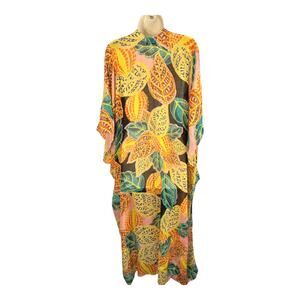 Free Press Womens One Size Tropical Leaves Maxi Length Kimono Cover Up