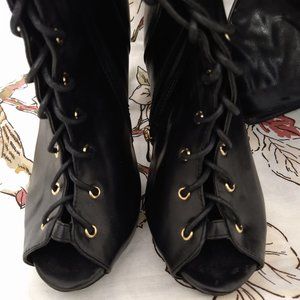 Free Reign Blk Vegan Wide Calf Lace-up Heel Boots