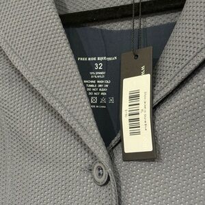 Free Ride Equestrian show coat. Stretchy comfortable material in slate blue. States size 32 a fits like a large.
