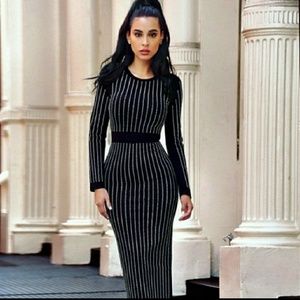 Stretch crepe form fitting long sleeve ankle length bodycon dress