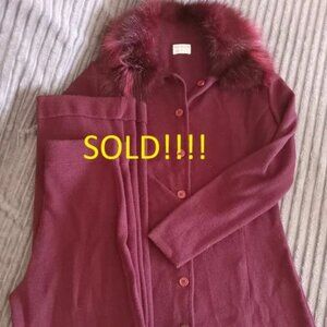 Excellent condition, Burgundy, size M, pants are wide legged and Sweater/Jacket is somewhat fitted. Very soft and elegant