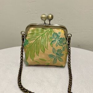 Free Small Clutch With Handmade Genuine Leather Floral Embossed Wooden Frame Bag