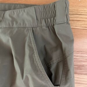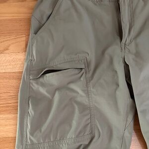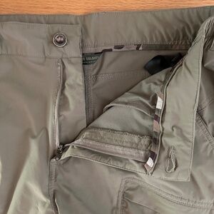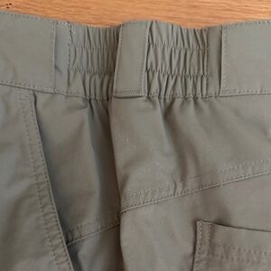 Free Soldier Cargo Hiking Tactical Pants Mens 36X34 Tan. Lightweight, waterproof; 86% nylon, 14% spandex. 6 pockets: 2 side diagonal, 2 front Cargo, and 2 back. Long belt loops (pic 10). Elastic on sides of waist for "give." Color is tan and is accurate in pics 2-10. Excellent, clean condition with no stains, holes, or tears. Size 36X34.