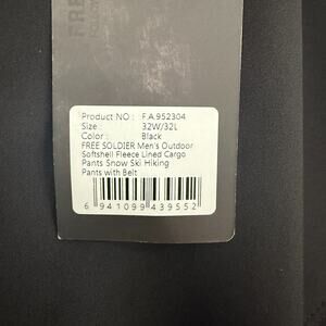 Free Soldier Mens Fleece LIned Softshell Cargo Pants Size 32 Black Snow Ski New