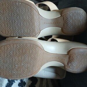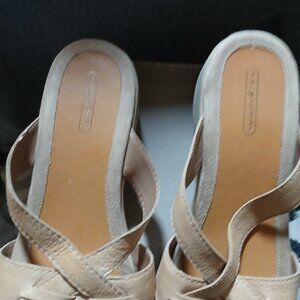 Free Spirit Slide on Sandals size 9M , Esnaya, Leather. THESE ARE NEW IN BOX, BUT THEY HAVE BEEN TRIED ON IN MY STORE, AS SEEN IN PHOTOS, the top of the box is destroyed but the rest of the box is good.