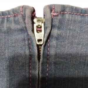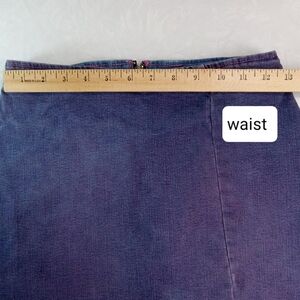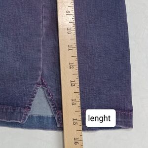 Wild Fable Denim Rebel Mini Skirt Straight Silhouette Blue w/ Understated Tones of Pink Mid Wash Women 4 Stretch Notched Front Hem Back Zipper Environmentally Friendly