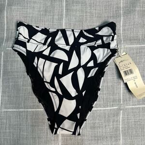 Free Sport by Gottex Size 6 Geo Club High Waist Swim Bottom Black White Bikini