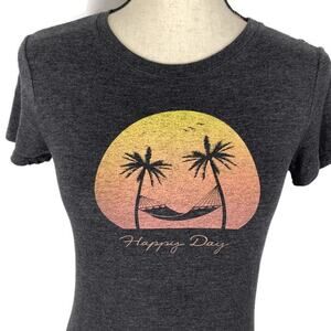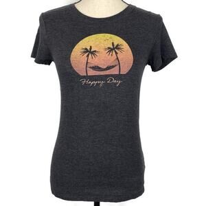 Free State Graphic Tee Happy Day Hammock Short Sleeve Charcoal Womens Sz Med