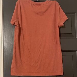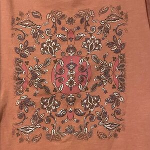 Stylish rust tee with a bold floral pattern. Perfect for everyday wear. Very soft and comfy shirt.