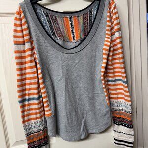 Free People Sweater , gray and orange, size L and fit is true to size.