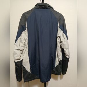 Like new size M waterproof gray and blue lined jacket.