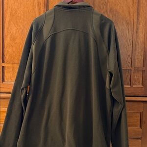 Durable and stylish performance jacket. Dark green with bright orange details. Ideal for outdoor activities.