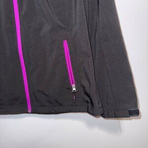 Free Tech Womens Black Softshell Jacket With Hood & Purple Accents Size L