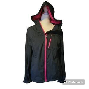 Free Tech Women's Size Medium Black with Hot Pink Trim Athletic Hooded Jacket