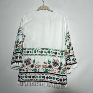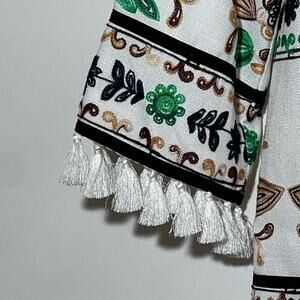 Free The Roses Embroidered Tassel Floral Fully Lined Jacket White Womens Size S