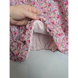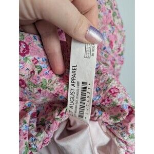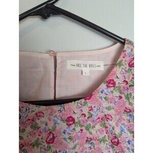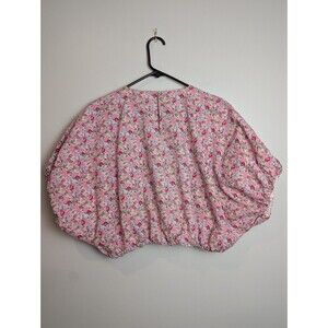 Free The Roses Women's Voluminous Crop Top L Puff Sleeve Floral Pink