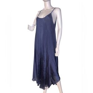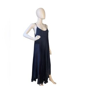 Flowy navy blue maxi dress with spaghetti straps. Perfect for a chic and comfortable look.