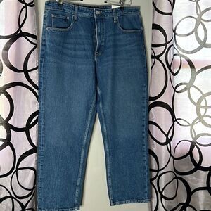 Free assembly the original 90s straight jeans, size 16, made of a cotton elastane blend, measures 38 inches at the waist with an inseam of 28 inches