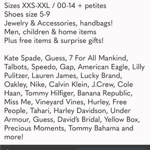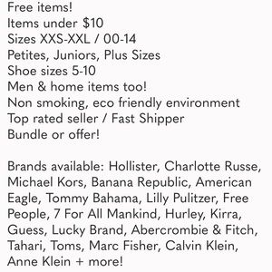 Free items! Check out closet for NWT / NWOT! Top brands! All seasons! All sizes! Men, kids & home items!