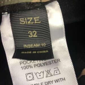 Two leg pockets and partial elastic waistband. Two back zip pockets. Lightweight. Gently worn and in good condition.