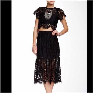 In excellent used condition. No major flaw. Top comes with inner Cami top. Black. Fits Xs. Top Length 16" chest 32". Skirt is lined. Length 31" waist 25". Zip closure on the back. Elasticized waist.