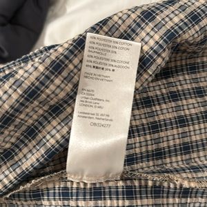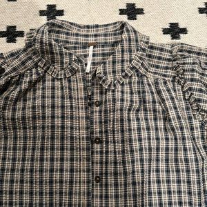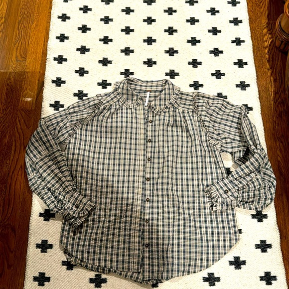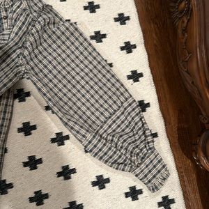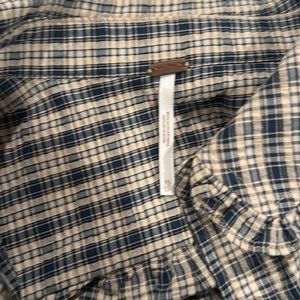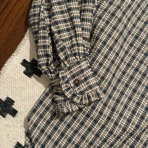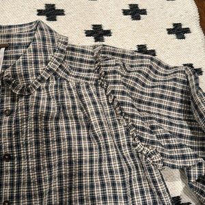 Button down bell sleeve waffle plaid top size xs like new condition no rips no stains cream and dark navy