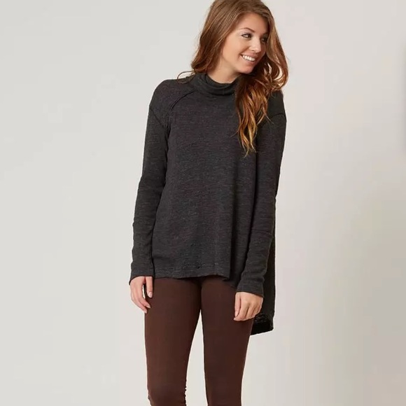 We the free by Free People Mock Neck Split Back Long Sleeve in gray