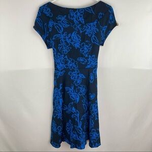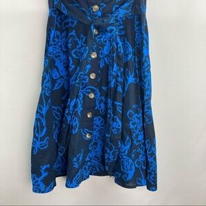 This is a brand new dress with tags still attached. The collar detail as well as the full button front add just a little extra to make this dress not only a show stopper, but practical. Sexy neckline, blue and black for the fall and winter season.